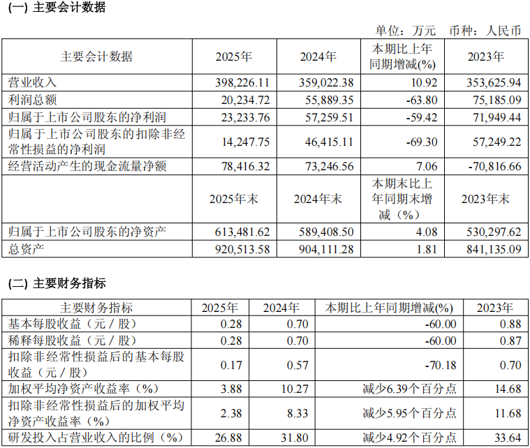 公司2025年研发投入总额为10.7亿元,占营业收入比重为26.88%。截至报告期末,公司拥有研发人员993人,占员工总数50.72%,研发人员平均薪酬为69.67万元。