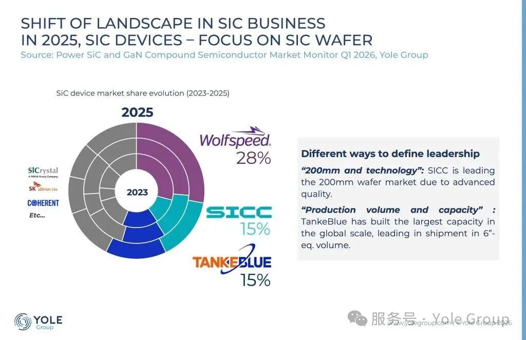 截至2026年,天岳先进 (SICC) 与天科合达 (TankeBlue) 均已跻身全球前三大SiC晶圆供应商。