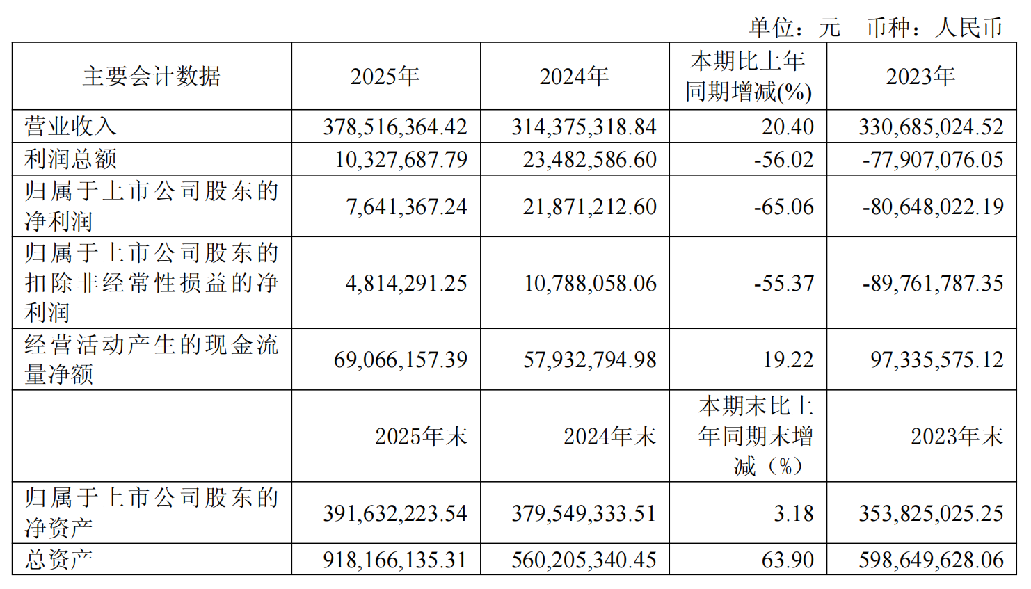 3月31日,三佳科技发布2025年年度报告,2025年公司全年实现营业收入3.79亿元,同比增长20.4%;归属于上市公司股东的净利润764.14万元,基本每股收益0.05元。因母公司存在未弥补亏损,公司本年度拟不分配利润,不进行资本公积转增股本。