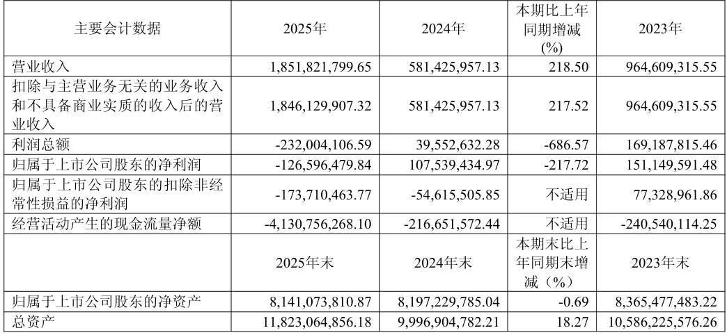 4月10日,上海先导基电科技股份有限公司正式发布2025年年度报告。年报显示,2025年先导基电实现营业总收入18.52亿元,同比增长218.5%;归属于上市公司股东的净利润-1.27亿元,同比下降217.72%;归属于上市公司股东的扣除非经常性损益的净利润-1.74亿元;经营活动产生的现金流量净额-41.31亿元。截至2025年末,公司总资产118.23亿元,归属于上市公司股东的净资产81.41亿元。