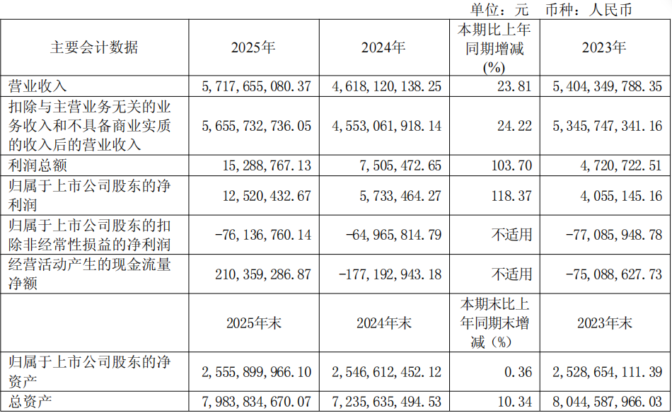 截至2025年末,公司总资产为79.84亿元,同比增长10.34%;归属于上市公司股东的净资产为25.56亿元,同比增长0.36%。公司资产负债率为55.83%,较上年末上升4.40个百分点。
