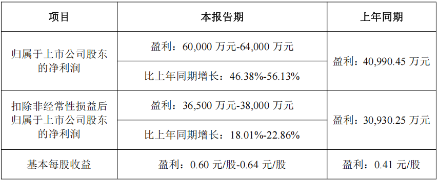 根据业绩预告,公司预计2026年第一季度归属于上市公司股东的净利润为盈利6.0亿元至6.4亿元,较上年同期的4.1亿元增长46.38%至56.13%。扣除非经常性损益后的净利润预计为盈利3.65亿元至3.8亿元,同比增长18.01%至22.86%。基本每股收益预计为0.60元/股至0.64元/股,上年同期为0.41元/股。