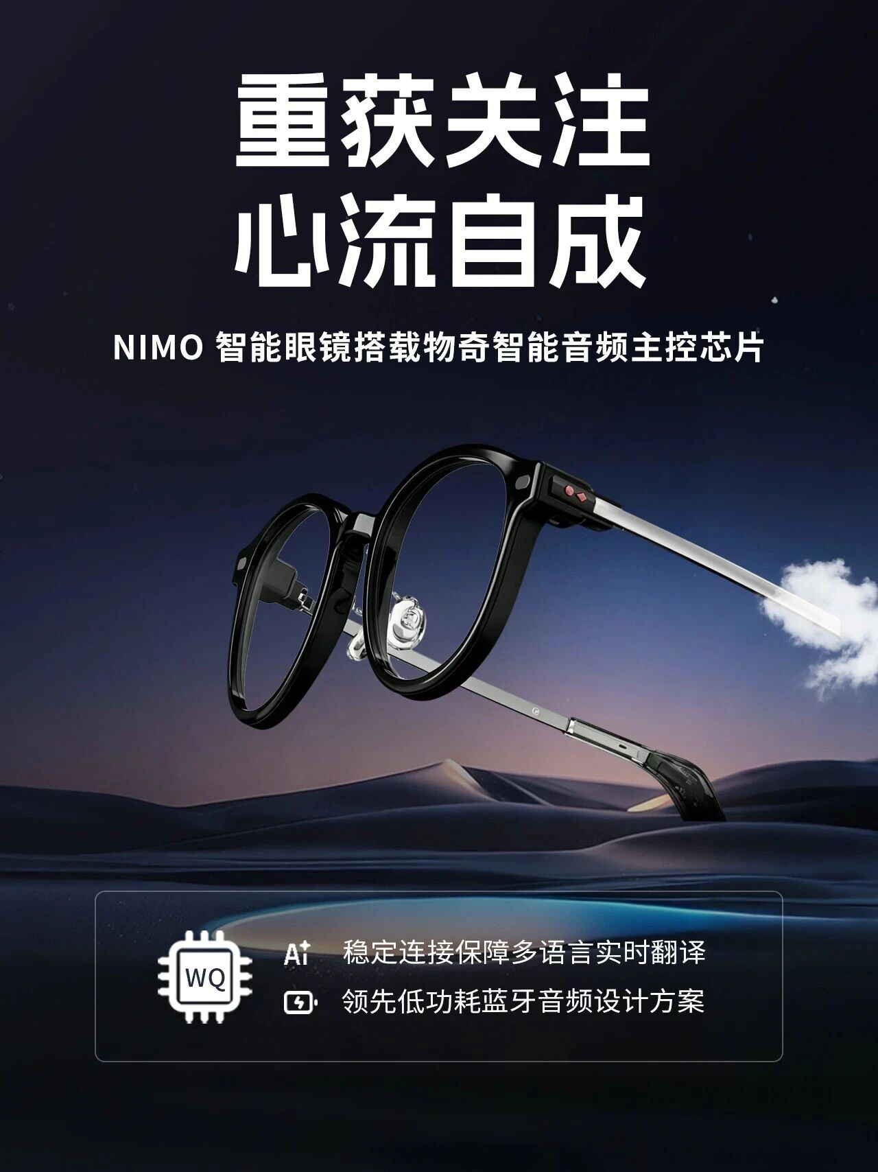 NIMO智能眼镜搭载物奇智能音频主控芯片WQ7036,带来强劲「芯」助力!