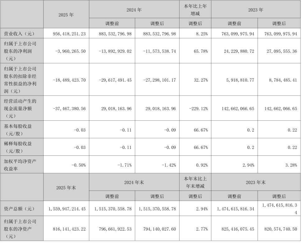 崧盛股份2025年实现营收9.56亿元,净利润同比减亏65.78%