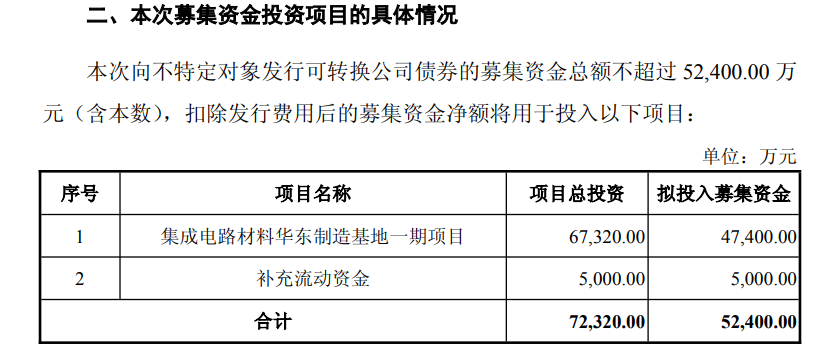 艾森股份:拟募资不超5.24亿元,投资于集成电路材料华东制造基地一期项目等