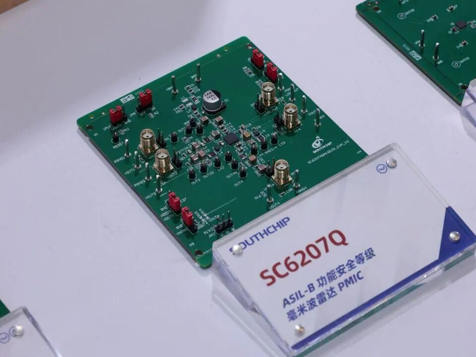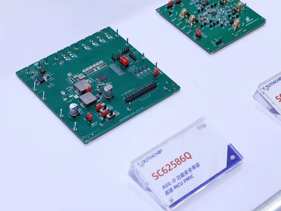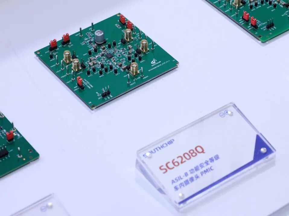 作为国内首批能提供从决策端到感知端一站式电源解决方案的企业之一,南芯科技在智驾领域的产品布局已覆盖域控、MCU、传感器全链路供电,基于自主研发技术和全国产化供应链,提供高效率、多样化的 PMIC 及通用电源产品。展台现场,南芯重点展示了不同类型的 PMIC 及感知链路 ECU 侧的电源和保护芯片。