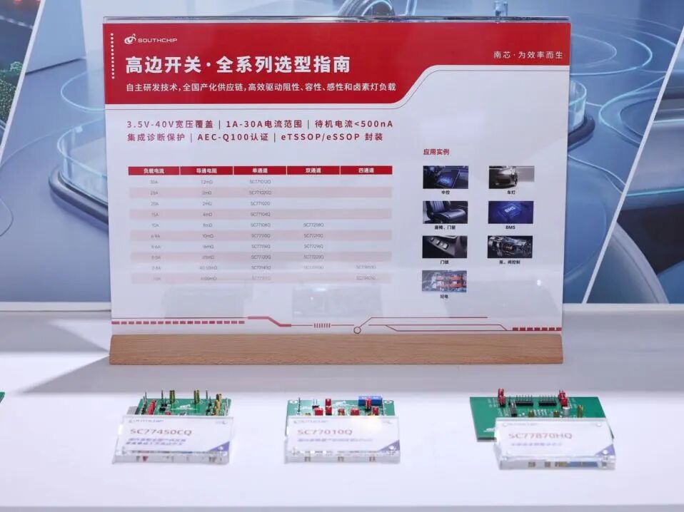 面向电动汽车多样化的负载类型,南芯在展台展示了高边开关、eFuse 及电机驱动三类驱动产品,可适用于中控、车灯、座椅门窗、门锁、阀控制、配电等不同应用场景。