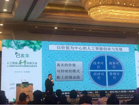 在大会上,北京大学教授、工业与信息化部原副部长杨学山在主旨演讲中指出AI的现状,基于AI的智能+正向与实体经济深度融合、向以人为本迈进,但在技术上,麻省理工认为目前发表的1万多篇论文中没有创新技术;而且AI到现在没有理论基础,处于前牛顿时期;从AI创业来看则是冰火两重天、成败一瞬间。