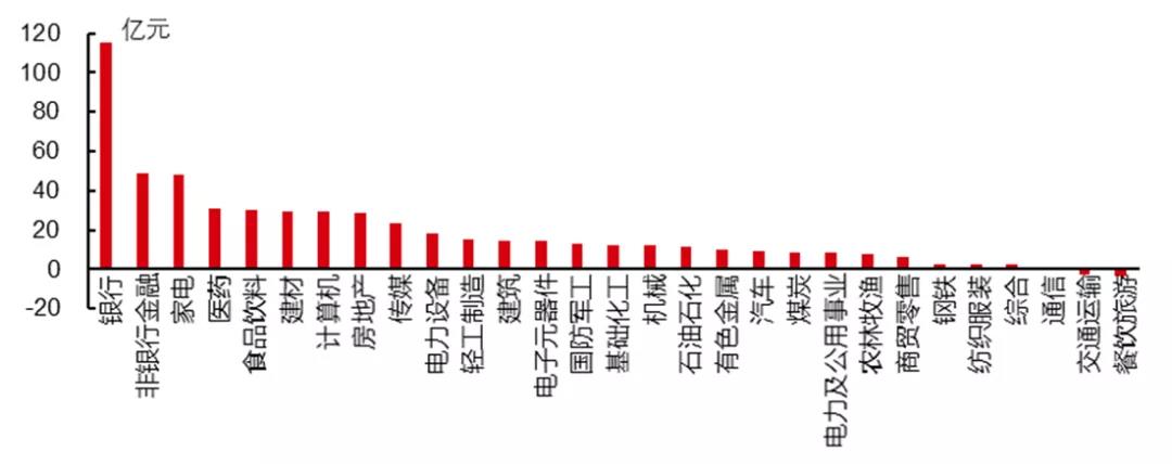 8月9日至今北上资金分行业净买入规模