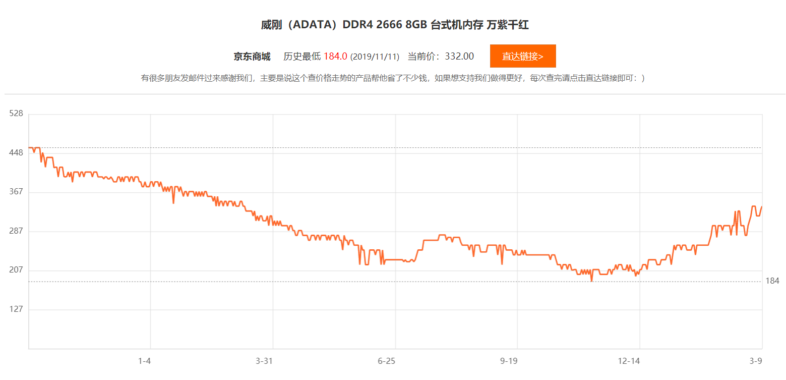 图2:慢慢买网威刚DDR4 2666 8G台式机内存条价格走势图