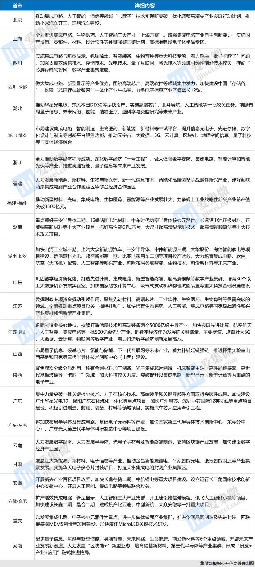 江苏:发挥财政专项资金撬动引领作用,聚焦先进材料、高端芯片、工业软件等亟需突破的领域,全面推动重点项目攻关“揭榜挂帅”。加快培育人工智能、集成电路等国家级战略性新兴产业集群和创新型产业集群;