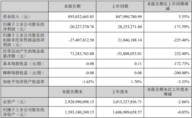 8月28日,联合光电发布2025年H1业绩报告称,上半年营收为895,032,645.85元,同比增长5.55%;归属于上市公司股东的净亏损为20,227,570.76元,同比由盈转亏;扣除非经常性损益后的净亏损为27,407,812.5元,同比由盈转亏。