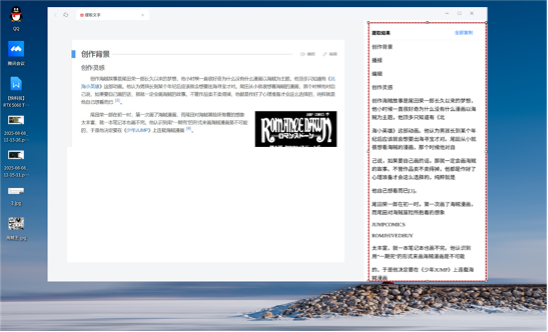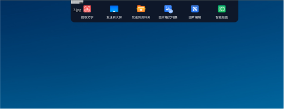 打开电脑助手,只需要把图片拖到桌面顶部,就可以实现文字提取、发送到大屏、发送到文件夹、图片格式转换、图片编辑、智能抠图等功能。