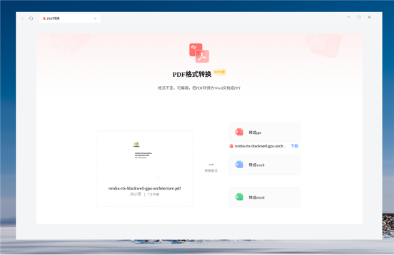 只需要将PDF文件拖到桌面顶端就可以实现PDF转换、发送到大屏、发送到文件夹等功能。