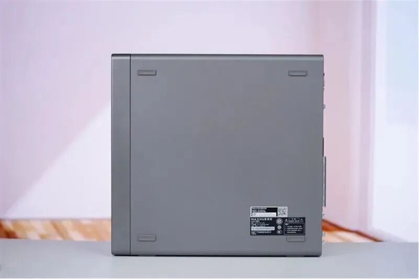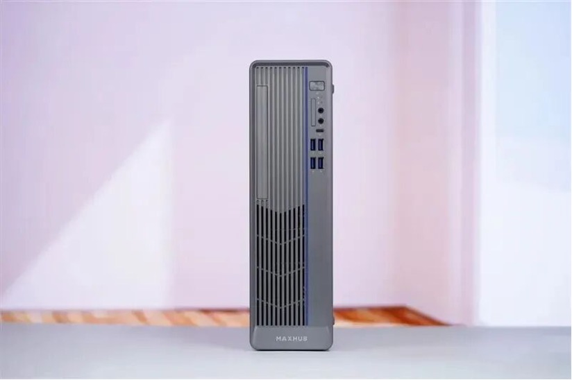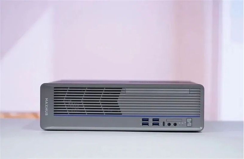 MAXHUB AI+电脑身材非常小巧,机身厚度仅有10cm左右,10L的体积不到ATX主机的1/4,放在桌面上不会占用太多空间。