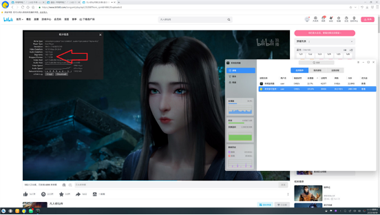 播放B站1080P视频,H264解码,视频帧率30FPS,码率5966Kbps,播放11640帧,0掉帧。