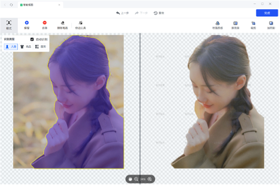 电脑助手可以自动识别人像、商品或者特定的图形并将其抠出来。