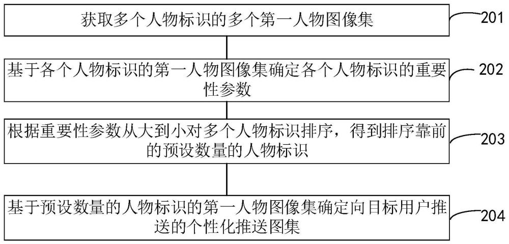 本申请公开了一种个性化推送图集的确定方法及装置,其中,获取多个人物标识的多个第一人物图像集;基于各个人物标识的第一人物图像集确定各个人物标识的重要性参数;根据重要性参数从大到小对多个人物标识排序,得到排序靠前的预设数量的人物标识;基于预设数量的人物标识的第一人物图像集确定向目标用户推送的个性化推送图集。本申请获取多个人物标识的多个第一人物图像集,在用户没有操作行为时可以根据各个人物标识的第一人物图像集确定各个人物标识的重要性参数,然后将重要性参数较高的人物标识的图集向用户推送,能够提高用户的个性化图集推送体验。