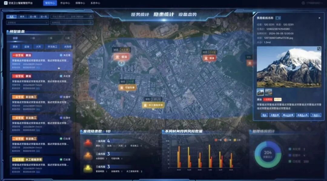 在低空经济产业领域,AI技术正成为研发与应用的“加速器”。位于珠海高新区的珠海紫燕无人飞行器有限公司,基于F15无人直升机、空巡卫士管控平台、AI识别和自动充电机场构建了一套“四位一体的无人化智能巡检闭环系统”。该智巡方案通过无人化、智能化技术手段,大幅提升巡检效率和降低了高危区域作业风险,真正实现全流程智能化、数据驱动决策。