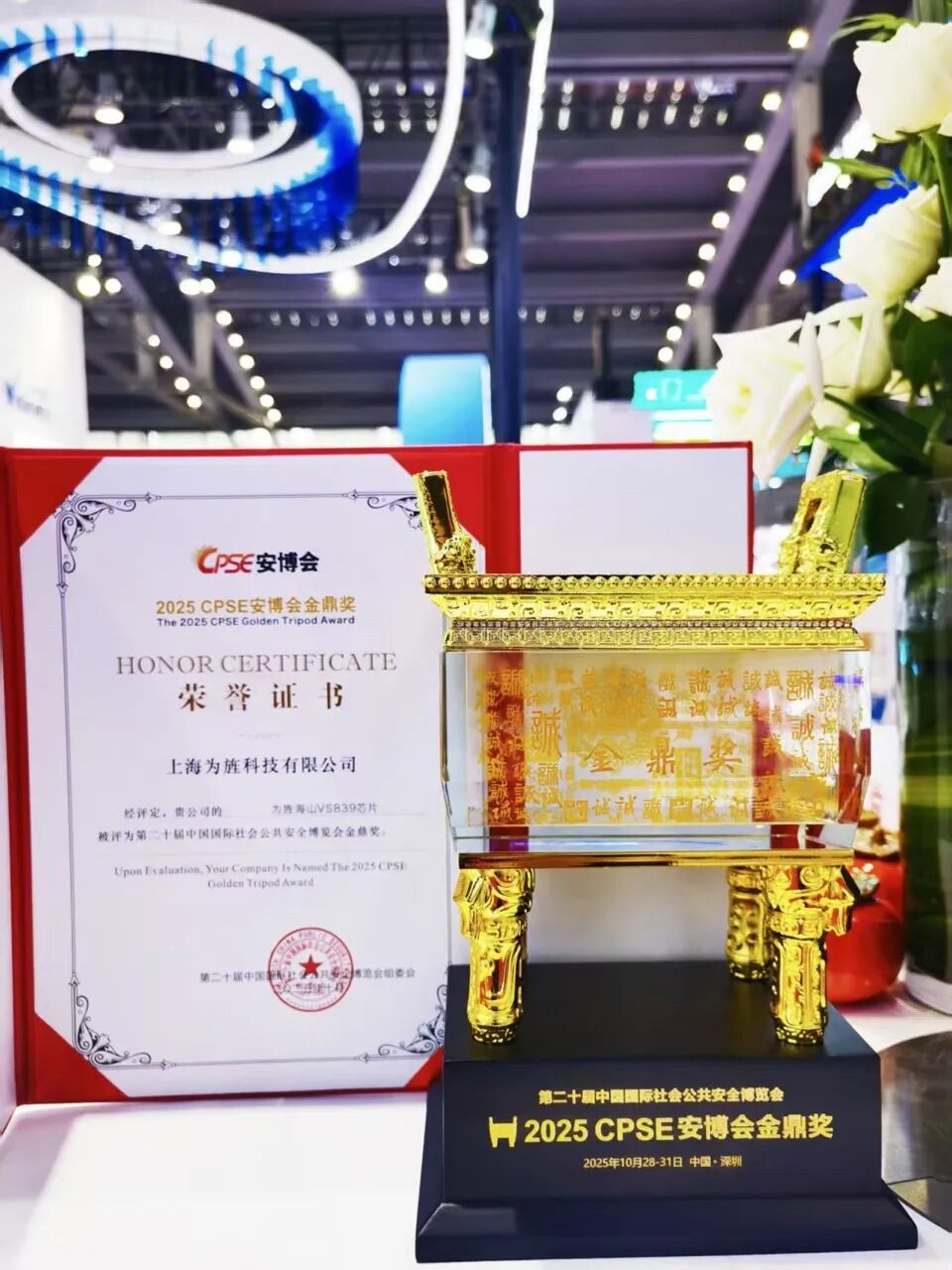 被誉为 “全球安防产业技术风向标” 的 2025 CPSE 安博会(中国国际社会公共安全博览会)核心奖项 ——金鼎奖正式揭晓。为旌科技旗下面向安防泛安防领域的旗舰级摄像头主控芯片 “为旌海山 VS839”,凭借在技术突破、性能标杆及行业落地价值上的卓越表现,从众多参评产品中脱颖而出,成功摘得此项殊荣。这一成果不仅是行业对为旌科技在智能视觉芯片领域技术实力的最高认可,更标志着国产安防芯片在高端化、智能化赛道上实现关键突破。