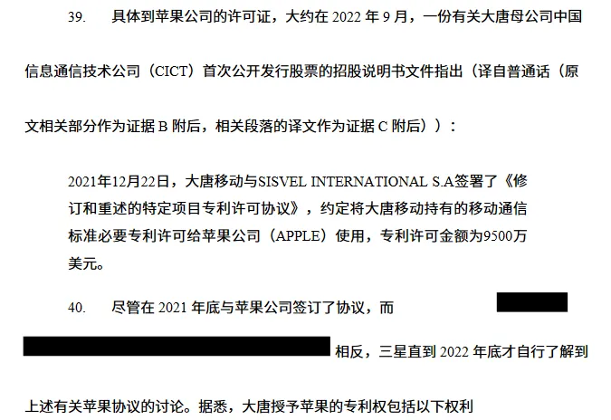 作为国内知名通信厂商,大唐移动与苹果、三星、联想、小米等知名手机厂商均有过专利纠纷。2021年大唐移动与苹果达成专利许可协议,据三星诉大唐起诉书等公开文件显示,苹果支付大唐的专利许可金额为9500万美元。