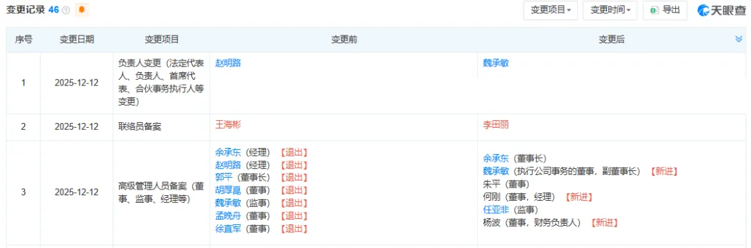 天眼查显示,近日,华为终端有限公司发生多项工商变更,郭平卸任董事长,由余承东接任,孟晚舟、徐直军等卸任董事。