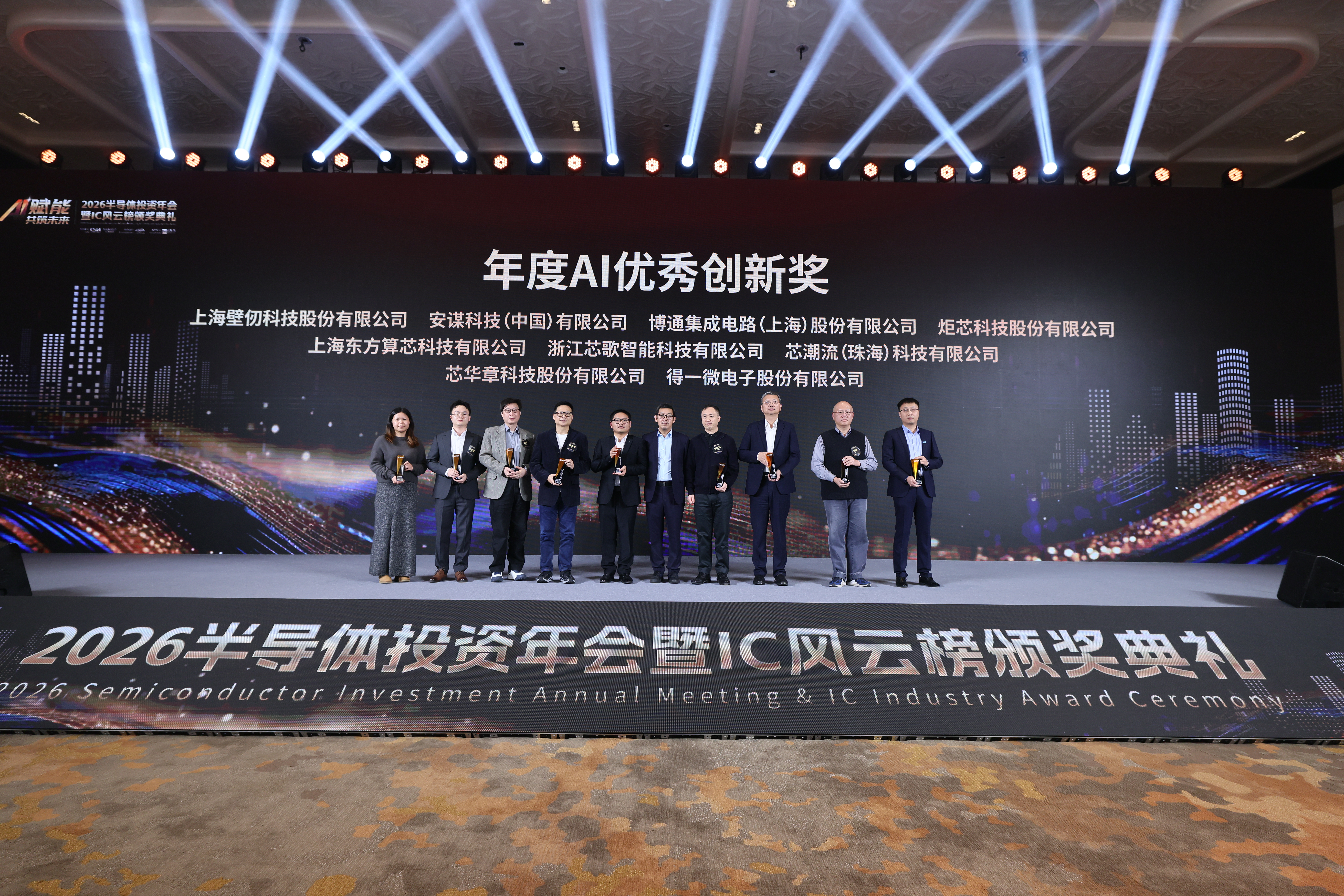 目前,2026年IC风云榜正式揭晓,重磅颁发“年度具身智能技术突破奖”“年度AI技术突破奖”“年度AI优秀创新奖”“年度AI赋能企业先锋奖”“年度车规芯片技术突破奖”“年度车规芯片市场突破奖”“年度智能汽车产业链最受机构关注奖”七大奖项。该系列奖项旨在表彰在具身智能、人工智能与智能汽车等前沿领域中,围绕核心技术突破、产品创新落地、市场规模化应用及产业生态建设等方面表现卓越、具有行业引领力和示范价值的企业与创新成果,集中展现中国集成电路产业在新一轮技术变革与产业升级中的创新活力与发展高度。
