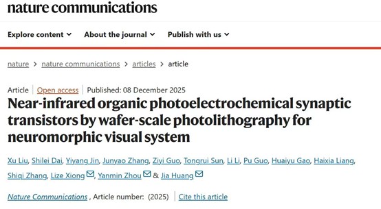 近日,同济大学材料科学与工程学院黄佳教授团队在有机晶体管感知器件领域取得进展,《自然·通讯》(Nature Communications)在线发表了团队题为“Near-infrared organic photoelectrochemical synaptic transistors by wafer-scale photolithography for neuromorphic visual system”的研究论文。