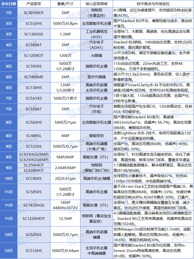 思特威2025年主要新品发布梳理