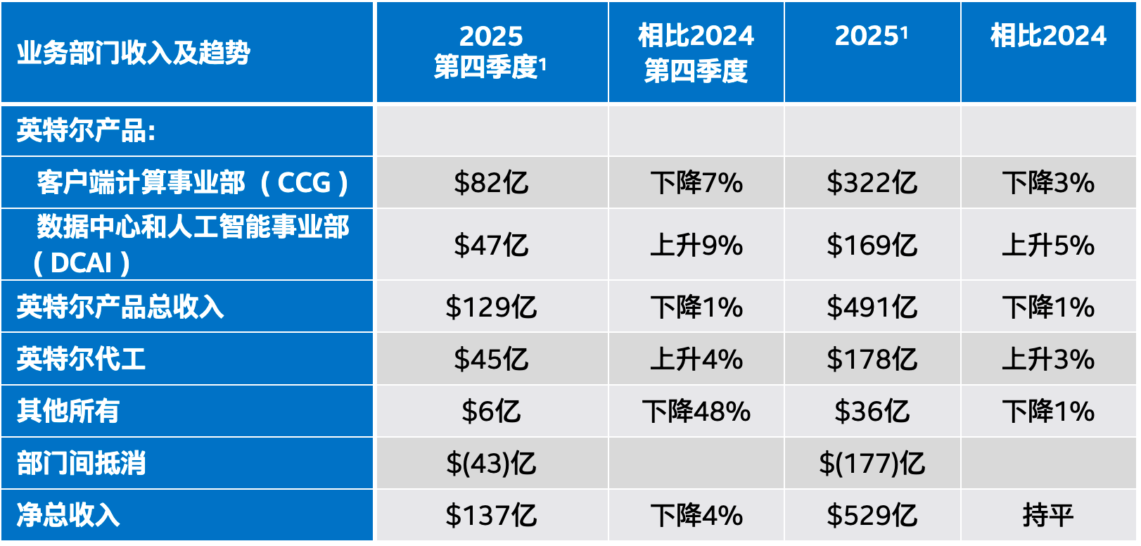 英特尔披露2025年第四季度及全年财报,预计今年Q1营收超117亿美元