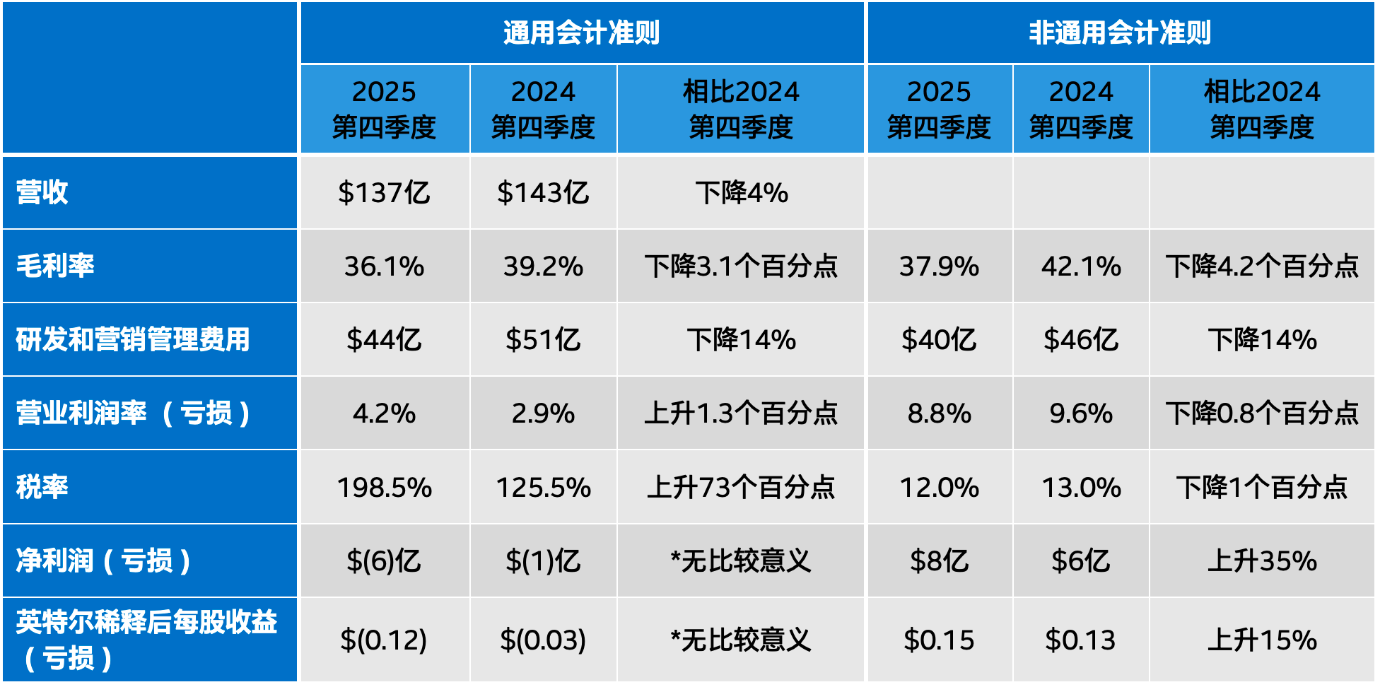 当地时间1月23日,英特尔公司发布了2025年第四季度及全年财报。