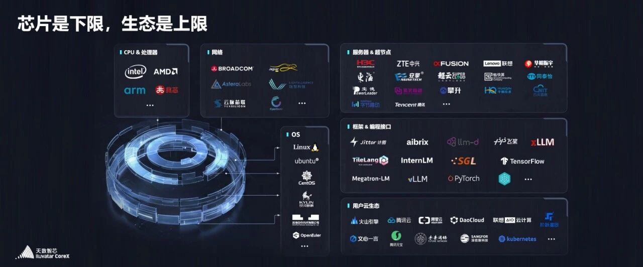 在生态建设上,天数智芯与硬件厂商、解决方案提供商等多家生态伙伴签署战略合作协议,进一步完善国产AI算力生态闭环,携手构建开放共赢的产业生态,让千行百业以更高性能、更便捷方式使用 AI,推动算力普惠时代早日来临。
