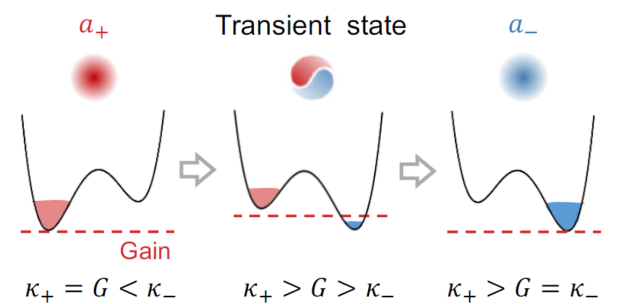 光学微腔具有超高的品质因子与丰富的非线性/非厄米效应,是研究激光动力学与实现可重构光源的重要平台。微腔中常见的模式竞争会导致激光在多个近简并态之间跃迁。以往人们更多聚焦于激光态切换先后的稳态特性,而难以直接“看见”切换过程如何发生、需要多长时间等临界行为(图1)。另一方面,在激光态切换的临近动力学也是可重构光子芯片、耦合腔激光网络和新型信息处理等需求的重要物理基础。然而,在临界条件附近,上述过程短暂且对噪声敏感,使得长期以来“切换过程本身”难以被直接捕捉与定量刻画。
