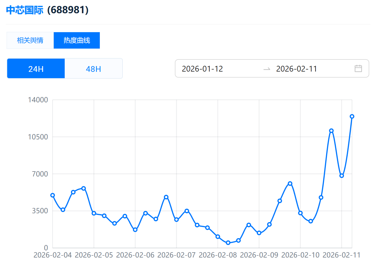 财报披露与业绩指引成为今日市场关注的绝对主线。中芯国际发布2025年第四季度财报,销售收入达24.9亿美元,并举行业绩说明会,其龙头地位与关键财务信息推动其登顶热度榜。维信诺热度延续,继柔性芯片重大突破后,公司多项显示技术专利取得新进展,持续的技术输出巩固了市场关注,位列第二。寒武纪同样有新专利获批,作为AI芯片龙头在财报季窗口期维持了较高的市场能见度,位居第三。