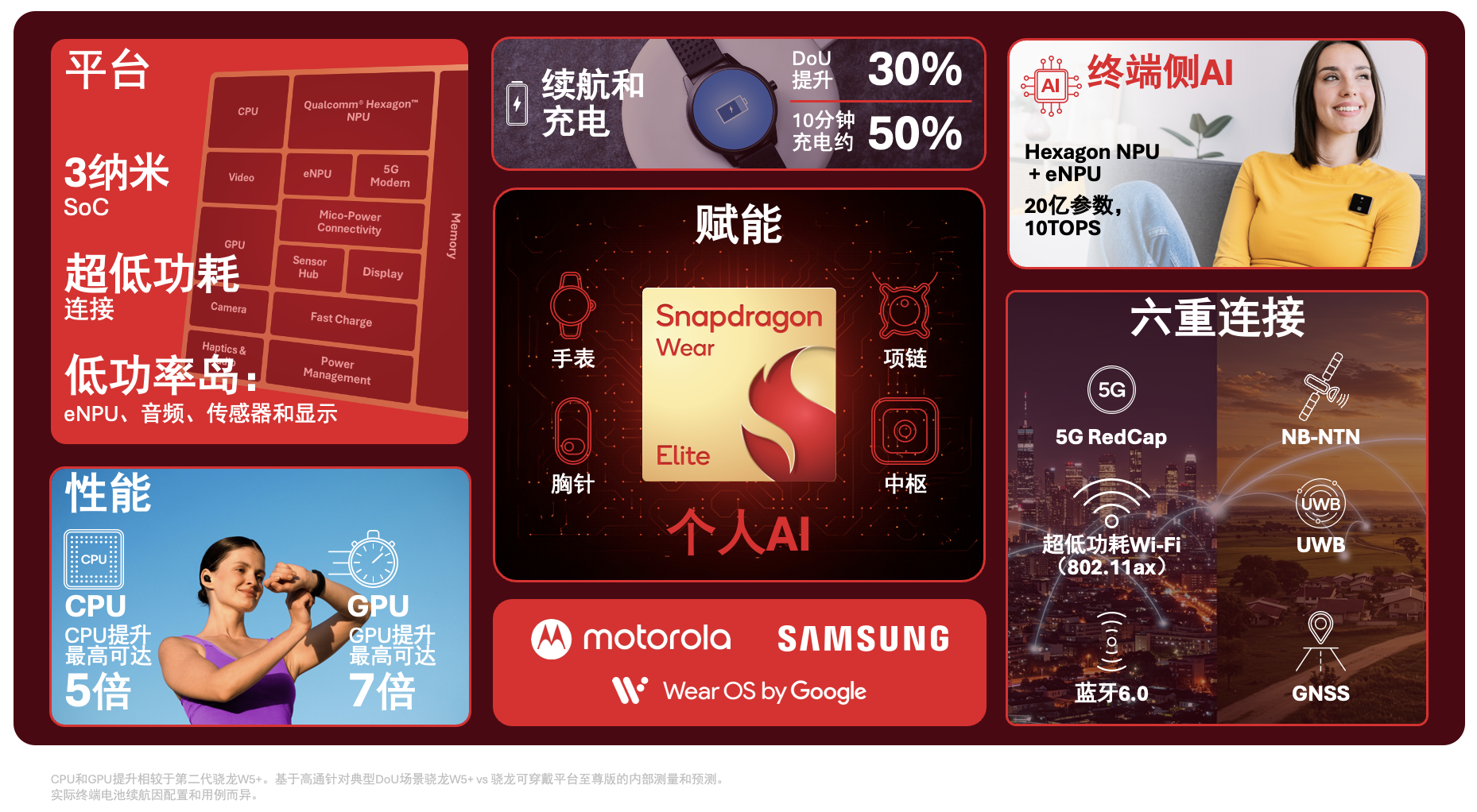 骁龙可穿戴平台至尊版是一款个人AI平台,为解锁下一代真正实现个性化、始终在线的智能可穿戴计算设备而设计。它在边缘侧赋能个人AI,支持包括手表、胸针、吊坠等在内的多种形态,带来个性化的交互与洞察。该平台是业内首个由NPU赋能的可穿戴平台,可在终端侧直接实现高性能AI处理。