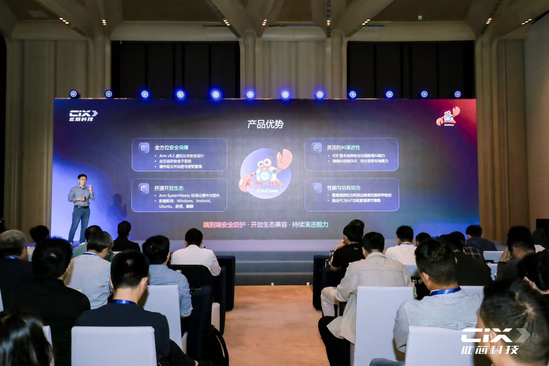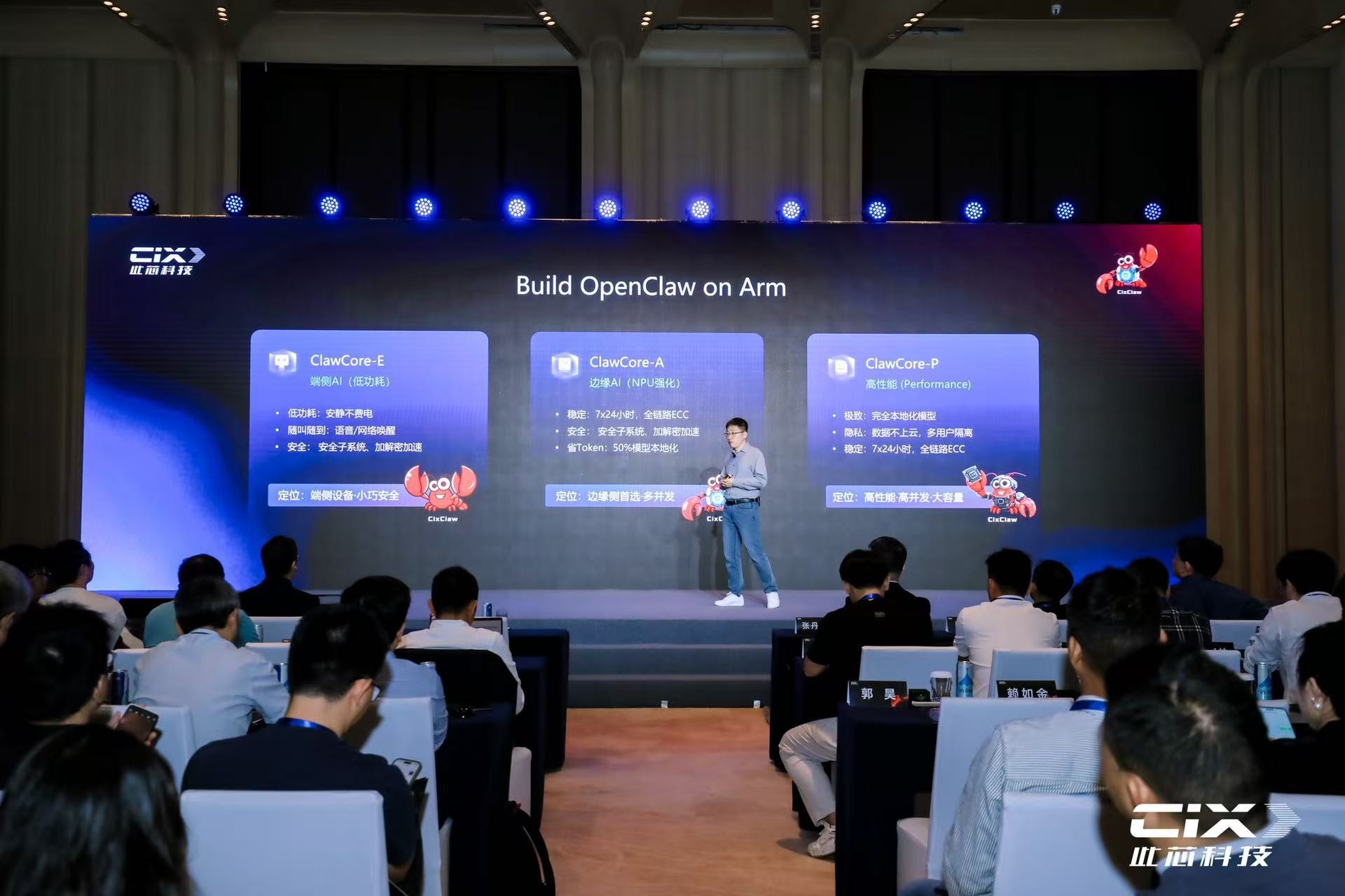 凭借对 OpenClaw 核心价值的深刻理解与生态布局,此芯科技依托 Armv9 架构、自研芯片及安全AI技术,在全球范围内率先完成了 OpenClaw 的深度适配,并发布了全球独创的CIX ClawCore系列CPU(“螯芯”),以及基于CIX ClawCore系列芯片的OpenClaw智能硬件方案、全系产品矩阵与开放生态。