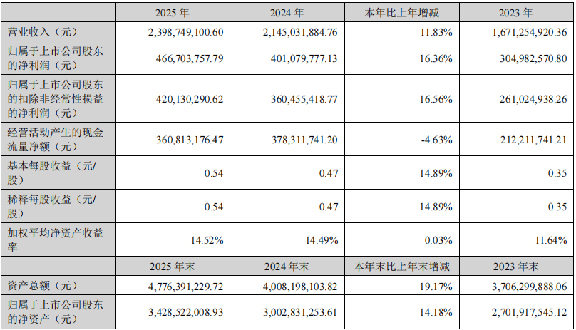 3月26日,云意电气发布2025年年度报告。报告显示,公司在汽车行业电动化、智能化转型深化的背景下,通过深化产业链垂直整合、强化技术研发与市场拓展,实现了经营业绩的稳健增长。报告期内,公司实现营业收入23.99亿元,同比增长11.83%;归属于上市公司股东的净利润达4.67亿元,同比增长16.36%,连续三年保持增长,创下历史新高。